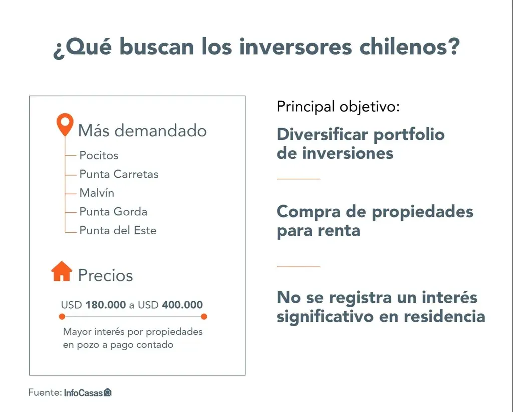 Según estimaciones del portal InfoCasas, la inversión chilena superó los US$ 12.000.000 a fines de 2022 en vivienda y oficinas.
