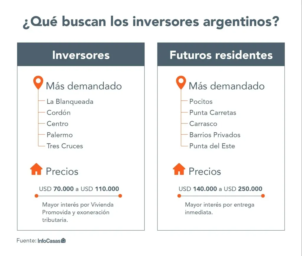 En cuanto a zonas más buscadas en Montevideo se encuentran: Pocitos, Punta Carretas, Malvín, Punta Gorda. Punta del Este es otro de los puntos elegidos con inversiones que van desde los USD 180.000 a los USD 400.000.