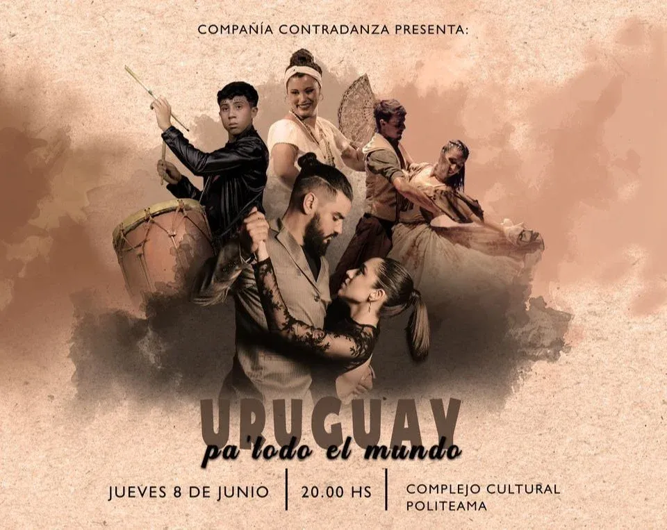 Pa todo el mundo. El 8 de junio a las 20 hs se presenta la compañía Contradanza en el teatro Politeama Compañía Contradanza con su espectáculo Uruguay pa´ todo el mundo. Bajo la Dirección Artística del Mtro. Gastón Damián Morossini y la coreografía de Soledad Da Silva, Victoria Peluffo y Gastón Damián, la obra recorre las principales manifestaciones danzarias y musicales que constituyen la identidad del Uruguay a lo largo de la historia.