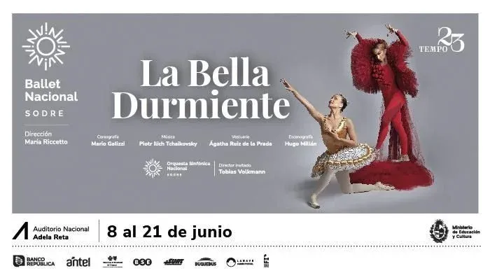Ballet. El 8 de junio se estrena La Bella Durmiente y si no sacaste entrada, andá corriendo (o meté click corriendo). La nueva producción del Ballet Nacional del Sodre va hasta el 21 de junio y cuenta con la participación de la Orquesta Sinfónica Nacional del Sodre. Con música de Piotr Ilich Tchaikovsky, se ha convertido en la máxima joya del repertorio clásico. Entradas por Tickantel.