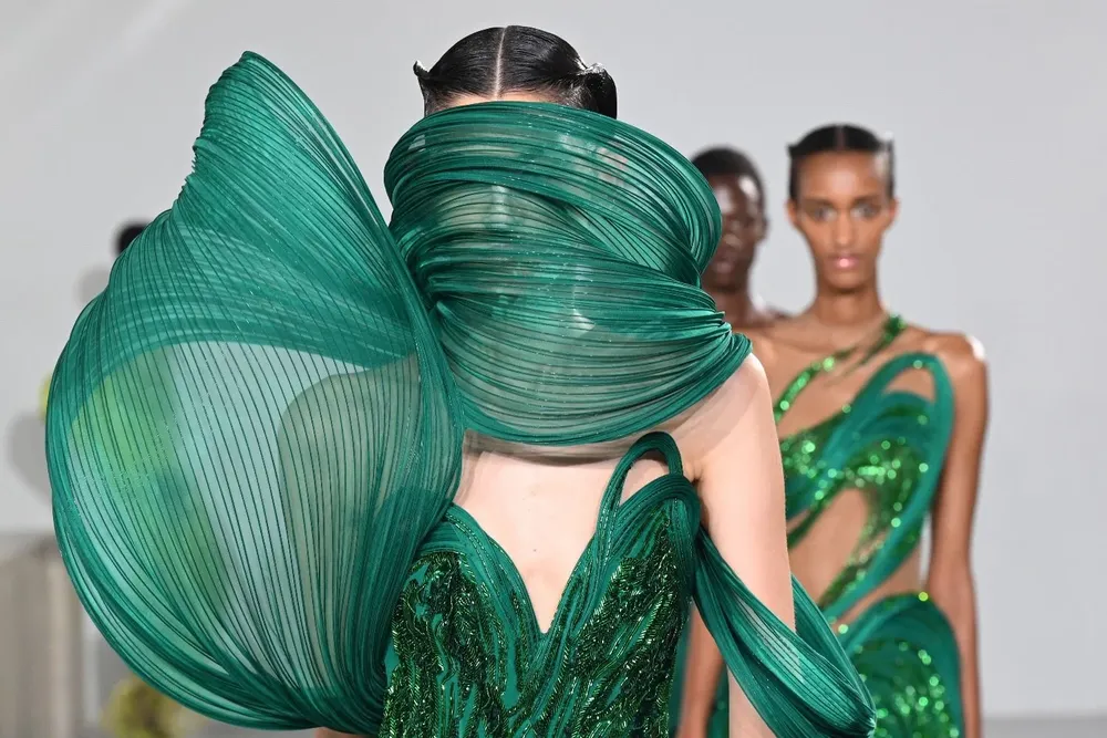 La estrella del PFW, Schiaparelli, deslumbro con atuendos inspirados en artistas, con un dejo poético. Cada look fue pensado y llevado a su máxima expresión a través de estallidos de color, joyería de madera que realza el valor de lo artesanal. Siluetas que juegan con la ilusión óptica y todo aquello que de rienda suelta a la expresión creativa.