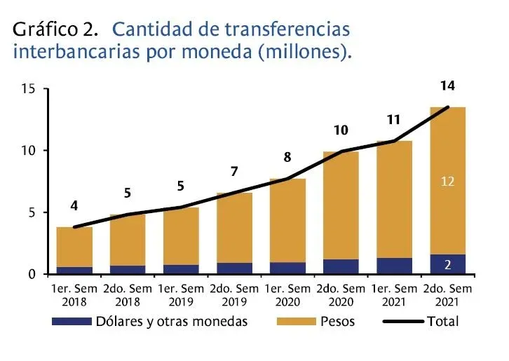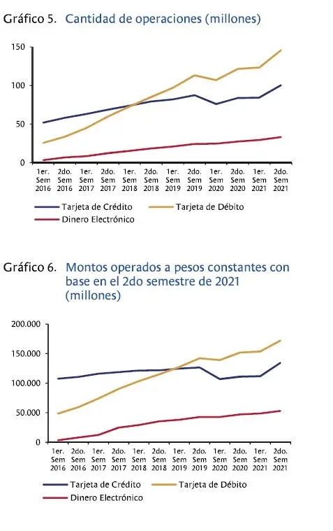 La operativa con tarjetas de débito tuvo un total de 146 millones de operaciones en la segunda mitad de 2021, lo que representó un crecimiento de 17% con respecto al semestre anterior. El monto operado fue de $ 171.802 millones (unos US$ 3.938 millones).
