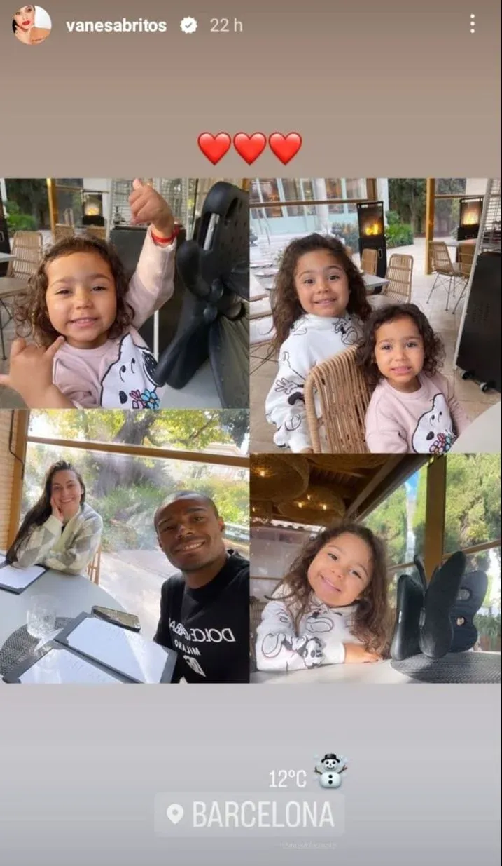 Instagram La foto que subió Mina Bonino Por su parte, Nicolás De la Cruz se fue al frío de Barcelona con su pareja Vanesa Britos y sus hijas.