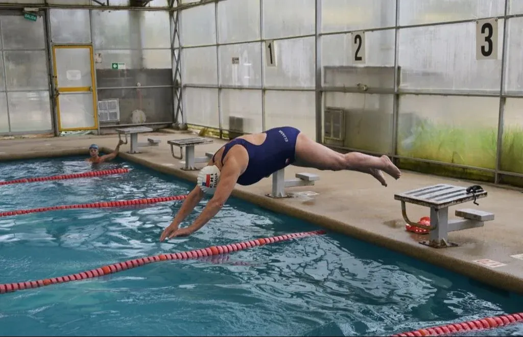 Eliana Busch entrena al menos cuatro veces por semana y da clases de natación en una piscina municipal de Viña del Mar.