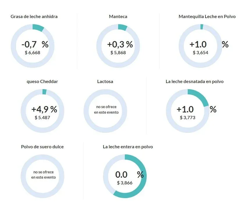 En esta ocasión también se comercializó manteca, grasa de leche anhidra, mantequilla de leche en polvo, queso cheddar y leche descremada. Todos sufrieron modificaciones leves en sus valores.