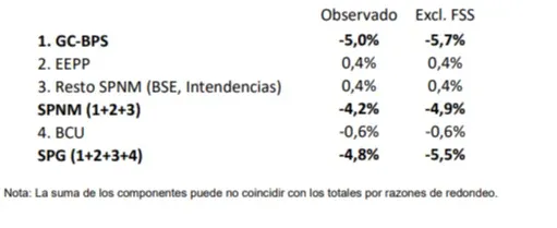 En los 12 meses cerrados a abril de 2021, el resultado del Gobierno Central - Banco de Previsión Social (GC-BPS) se ubicó en -5% del PIB. Depurando el efecto por el adelanto de pagos de pasividades y remuneraciones en el mes de marzo, el resultado del GC-BPS se mantuvo constante en términos del PIB. El ingreso de fondos al Fideicomiso de la Seguridad Social (FSS) -ley de cincuentones- fue de 0,7% del PIB, por lo que el resultado fiscal del GC-BPS depurado de ambos efectos se ubicó en -5,7% del PIB.