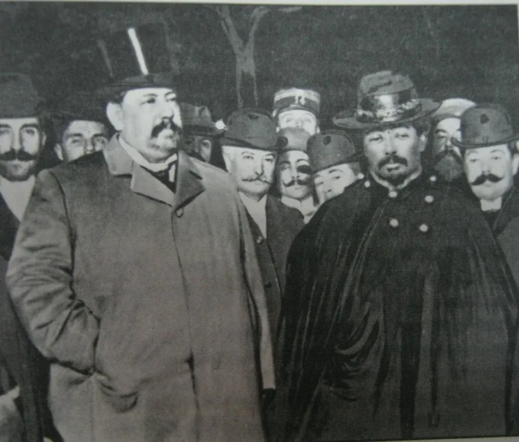 José Batlle y Ordóñez y Pablo Galarza, a su izquierda, el 21 de agosto de 1904