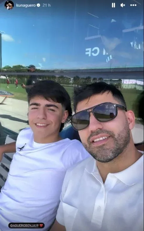 El Kun, que reside en Miami, compartió imágenes de la práctica y su hijo Benjamín, fruto de su relación con Gianinna Maradona, subió una foto junto a Messi.