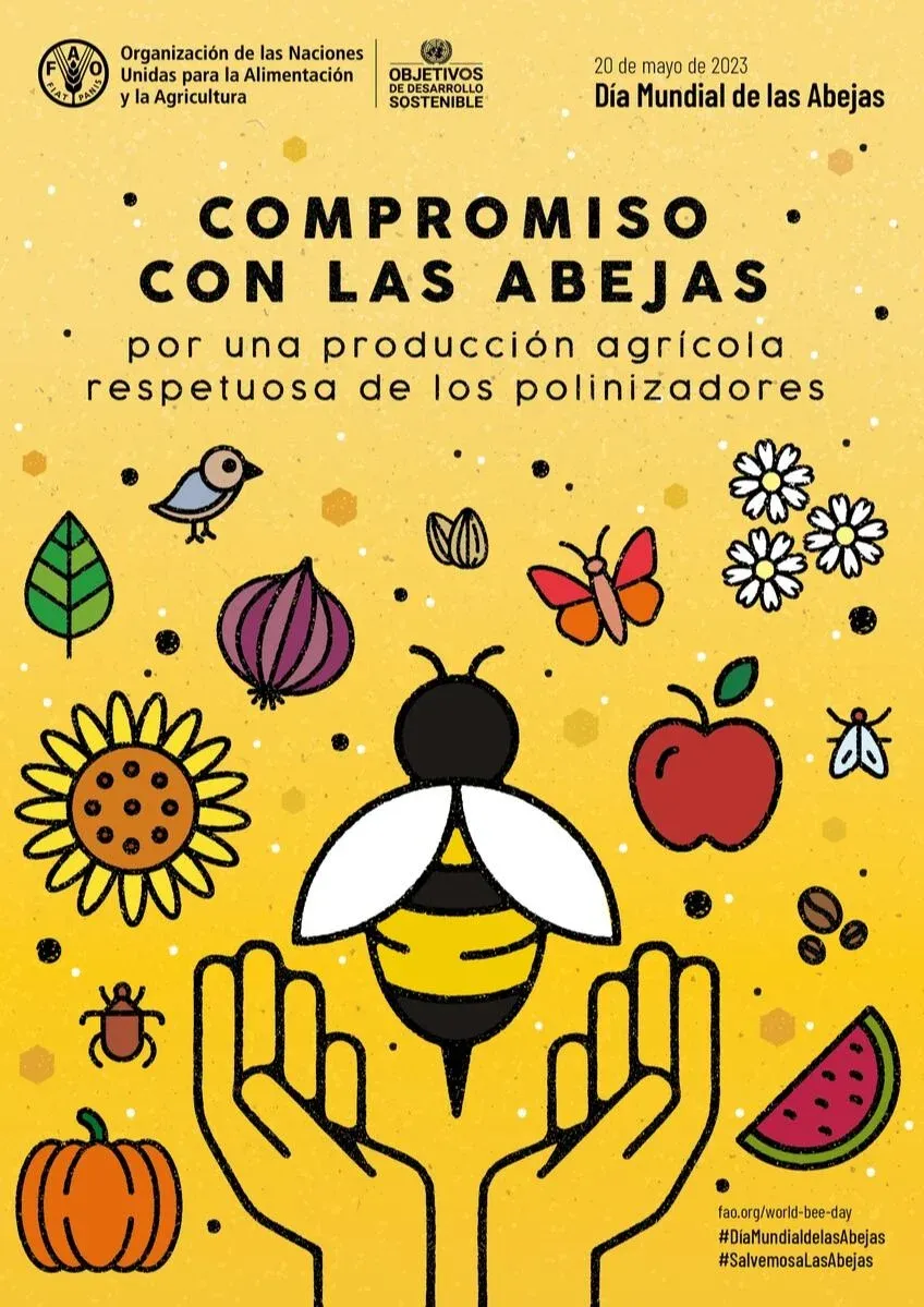 Bajo el lema “Compromiso con las abejas: por una producción agrícola respetuosa de los polinizadores”, en el Día Mundial de las Abejas de 2023 se hace un llamamiento a la acción a todo el mundo con miras a apoyar la producción agrícola favorable a los polinizadores y se pone de relieve la importancia de proteger las abejas y otros polinizadores, especialmente mediante prácticas de producción agrícola basadas en datos objetivos.
