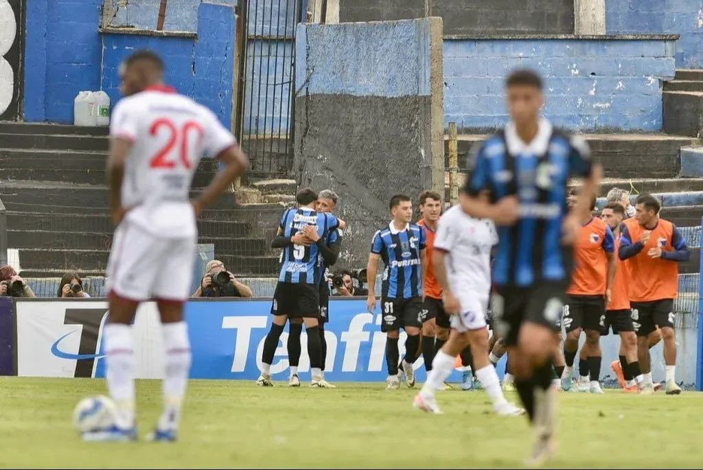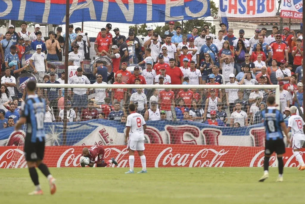Fredy Martínez vio todo el movimiento de Luciano. Vio cómo le entró por la espalda, pero la potencia, la velocidad y la repentización del movimiento de Luciano lo liquidaron. El lateral lo empujó en la espalda ya con la desesperada intención de que no definiera cómodo. El balón picó y se elevó. El ex Progreso dio un salto felino y a pie abierto la cruzó de palo. Notable definición. Qué jugador.