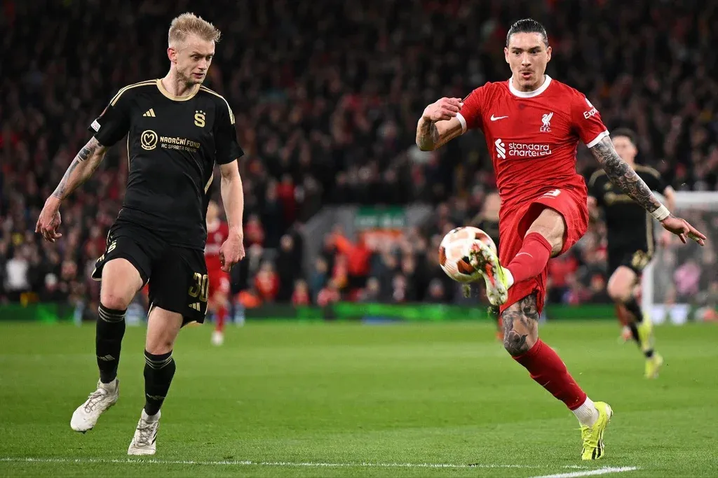 Con Darwin Núñez como titular, Liverpool goleó 6-1 a Sparta Praga en Anfield en duelo revancha de los cuartos de final de la Europa League.