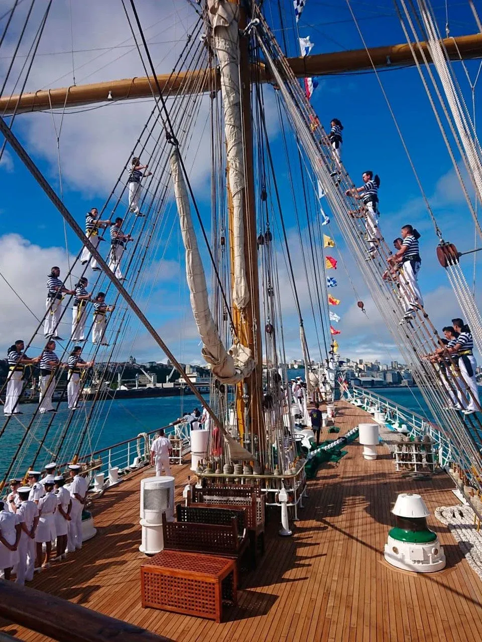 A bordo del buque viajan 70 guardiamarinas y tras 200 personas que completan la tripulación, entre oficiales y suboficiales. También lleva invitados extranjeros de las armadas de Brasil, Ecuador, Uruguay, México, Estados Unidos y Paraguay.