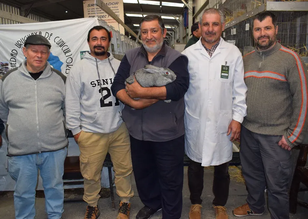 Hugo Piva es el dueño de la cabaña Los Viejos, de Carmelo, dedicada a la cría de conejos. Expuso a algunos de los 240 ejemplares de cinco razas que participaron en las calificaciones de la Expo Prado 2022 y entre ellos al mejor de todos, uno de la raza Chinchilla Americano. Y lejos de lo habitual, que es volver con él a la cabaña o venderlo en los remates, decidió regalárselo a Dardo Dutra, presidente de la Sociedad Uruguaya de Cunicultores (Sudec), que ha sido uno de sus mentores y quien lo introdujo en la crianza de esa raza.