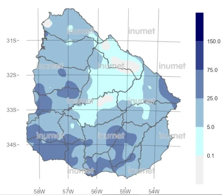 Los productores rurales festejaron las precipitaciones en las redes sociales, si bien fue diferente lo que llovió en distintas zonas del país, el agua, tan esperada, llegó. Según información del Instituto Uruguayo de Meteorología (Inumet), en las últimas 24 horas, en Colonia se dieron las máximas nacionales, con 76 mm en Colonia Miguelete y 69 en Nueva Helvecia. Por otro lado, en Bañado de Paja, en Cerro Largo, se acumularon 65 mm, y en Canelones 57 mm.
