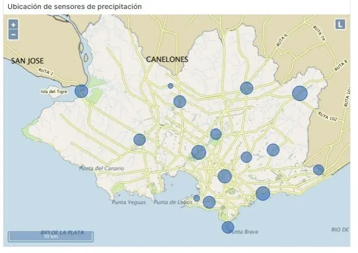 Además, volvió a publicar el mapa de la red hidrometeorológica de Montevideo, que marca las zonas de mayores precipitaciones en la ciudad, y las calle que corren más riesgo de inundarse. "Las áreas son aproximadas, y han sido determinadas para la magnitud pronosticada para tormentas intensas anteriores", destaca la Intendencia.
