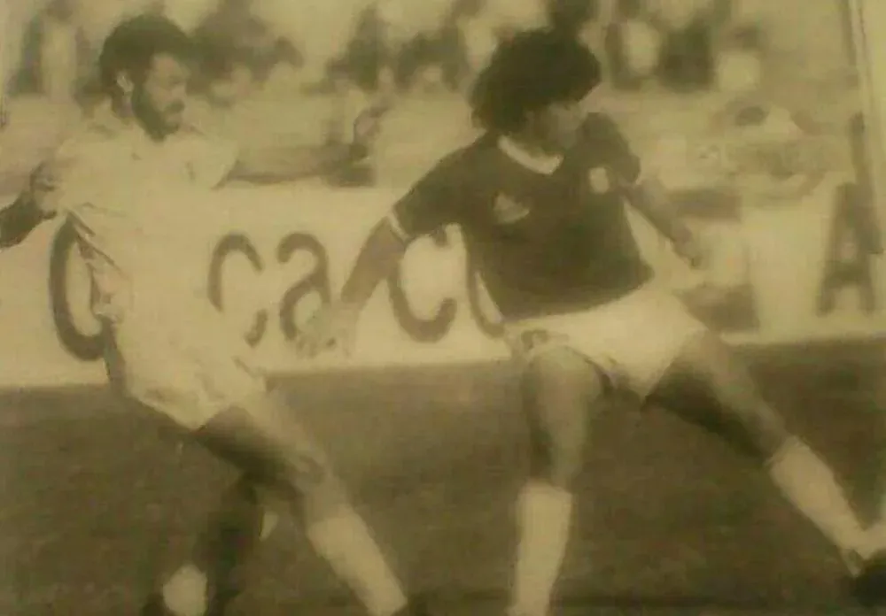 Alfonso Domínguez marcando a Diego Armando Maradona en la Copa América 1987; "Diego Armando habló muy bien de mí, dijo que nunca le pegué y lo marqué muy bien; eso hizo que con el tiempo me contrataran en River argentino", dijo Domínguez