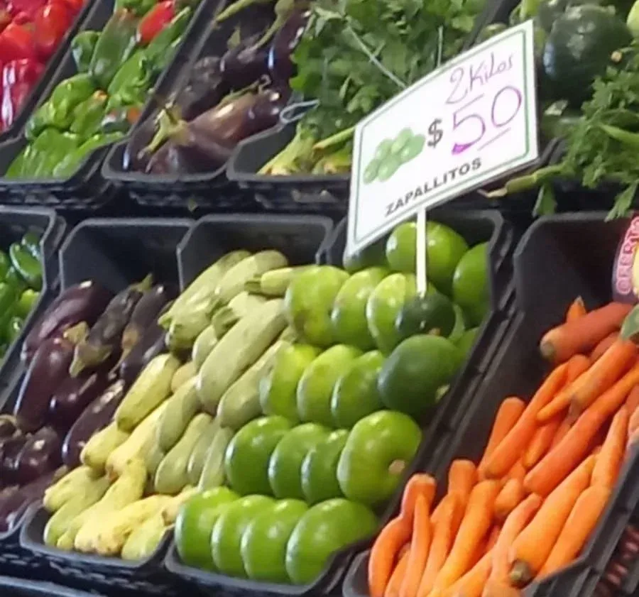 Calabacín, cebolla, choclo, ciruela, lechuga, melón, morrón rojo y verde, uva y zapallito.