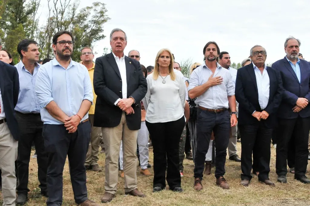 En la actividad, desarrollada en Young, Río Negro, Lacalle Pou estuvo acompañado por varios jerarcas, entre ellos Fernando Mattos, ministro de Ganadería, Agricultura y Pesca (MGAP); y el intendente departamental, Omar Lafluff.
