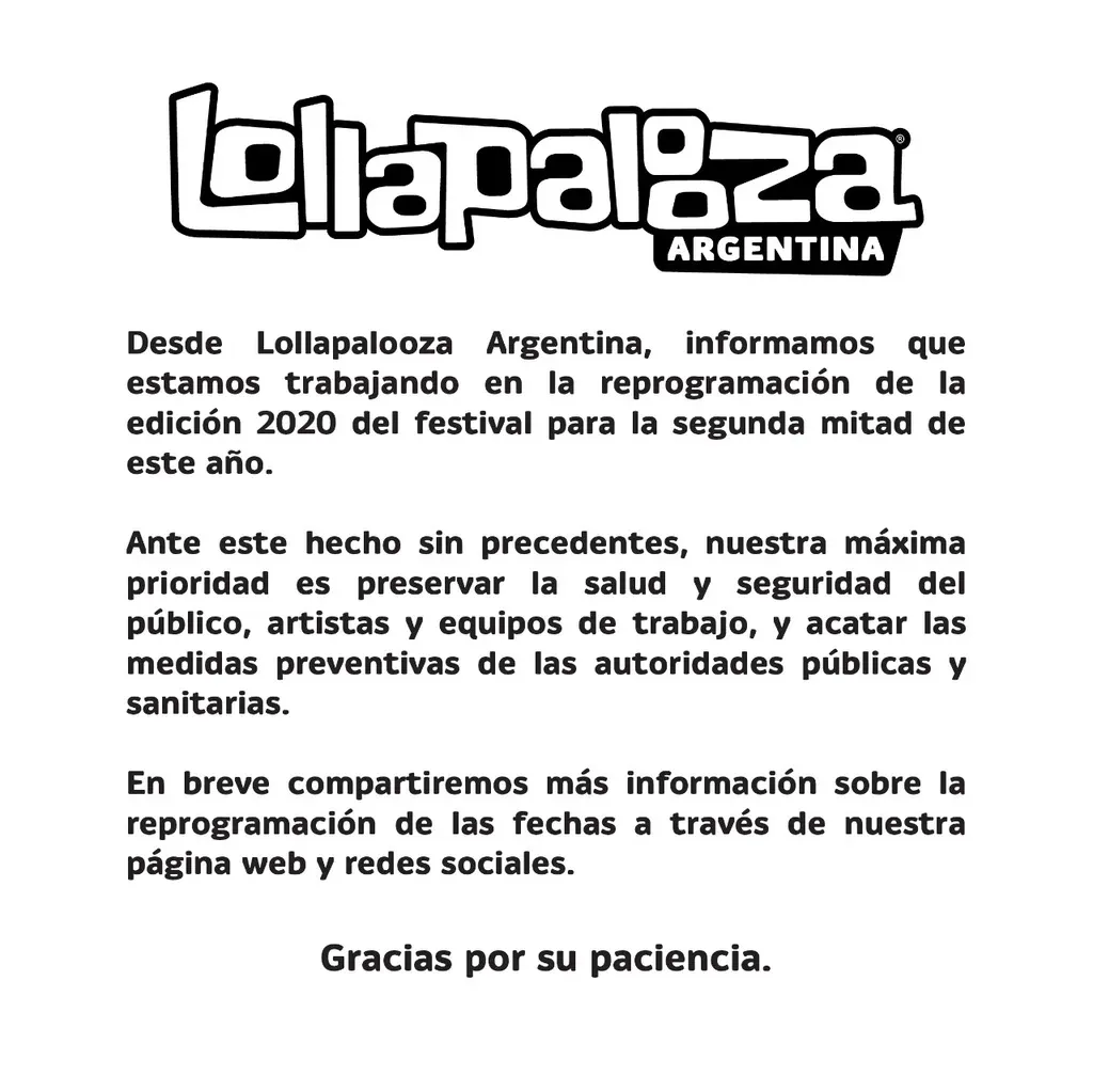 Debido a las medidas del gobierno argentino ante el avance del coronavirus en dicho país, el festival Lollapalooza fue suspendido. Les compartimos la nota que El Observador publicó en relación a este tema.