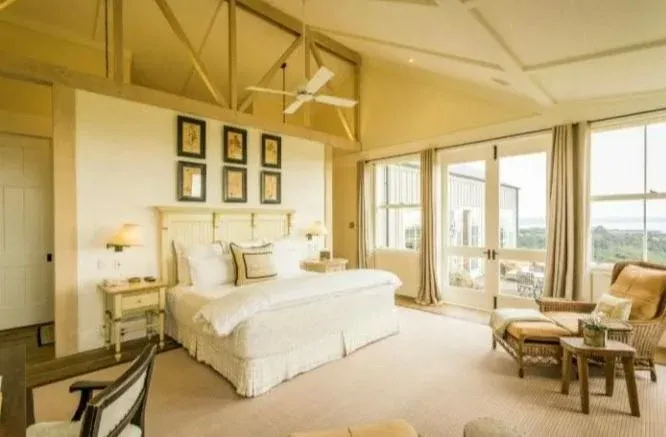 "A media hora en coche de Napier, siguiendo la costa del Pacífico de la isla Norte, se encuentra esta granja de 2428 hectáreas con campo de golf, reserva natural y uno de los alojamientos más estimulantes de Nueva Zelanda. Benedict Cumberbatch, que pasó la cuarentena en una de las casas vecinas, seguro que sabe lo que significa subir por las colinas arboladas hasta el señorial edificio y vivir la sensación de acceder a un lugar secreto", reseña Condé Nast.