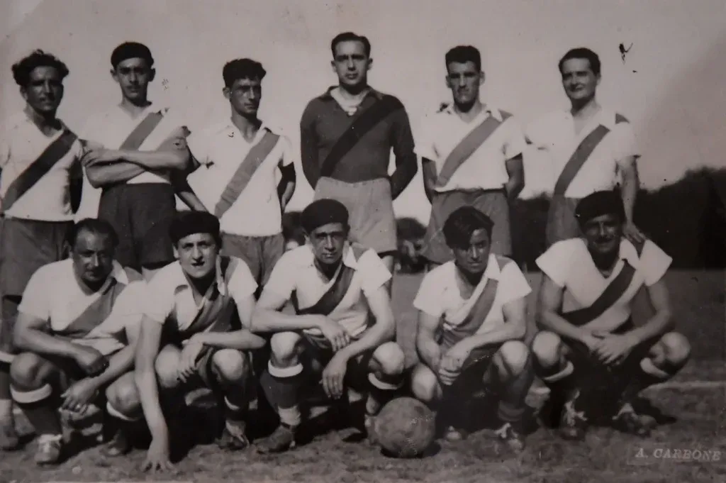 Dante Iocco jugador de fútbol y con boina; es el segundo de abajo desde la izquierda