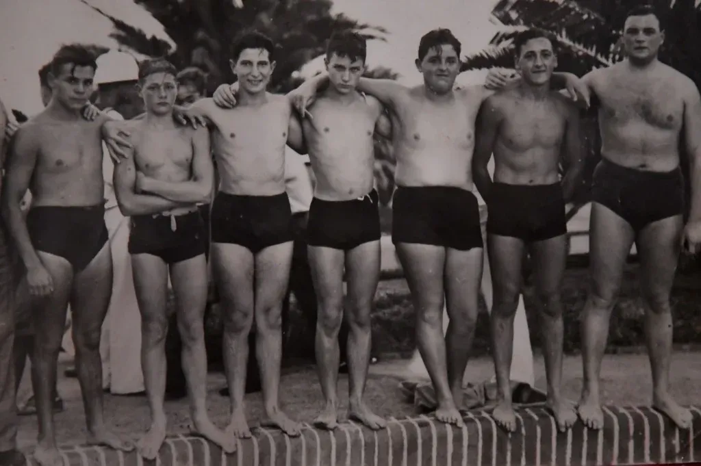 Iocco en la piscina de Trouville; es el segundo desde la derecha