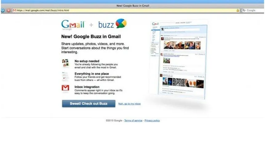 Era una especie de red social que se integró en Gmail, pero estaba plagada de problemas de privacidad y nunca llego a asentarse. La compañía anunció en octubre de 2011 que cerraría el servicio para centrarse en Google+.