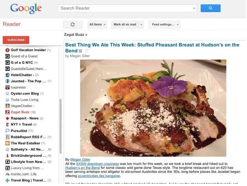 Aplicación para leer noticias en blogs o medios, que Google decidió cerrar en 2013.