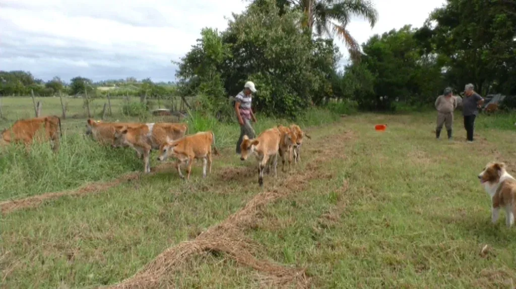 Sobre las 9:00, cuando el temporal aflojó y estaban de a poco recomponiendo todo, aunque sin Internet ni servicio de teléfono, por suerte una vecina les advirtió sobre terneros atrapados en un terraplén, donde hay un curso de agua que pasa por una de las chacras, sitio en el que los animales buscaron refugio en medio del temporal.