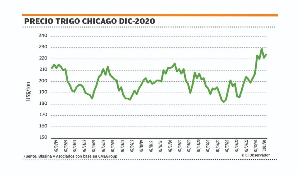 En cambio, los stocks finales de trigo 2020/21 en Estados Unidos están bajos, lo que explica la firmeza en el mercado de Chicago: pasaron de 25,19 millones de toneladas en setiembre a 24,03 millones, por debajo de las estimaciones de los privados.