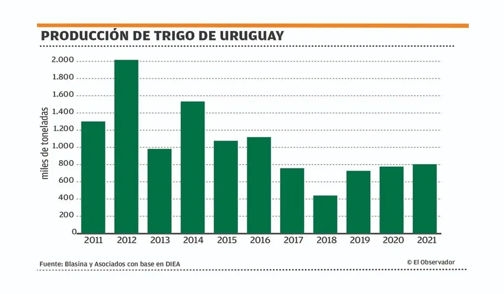 En Argentina la sequía ha causado graves pérdidas a lo que parecía sería una cosecha récord. Desde ese país, la analista de mercado de granos Lorena D’Angelo dijo a El Observador que “con la caída de Argentina la región va a tener menos oferta”. La Bolsa de Cereales de Buenos Aires recortó su estimación de producción a 16,8 millones de toneladas, una caída de 10,6% frente al ciclo anterior. Hasta setiembre la proyección estaba por encima de 20 millones. Las exportaciones quedarían en 10 millones de toneladas, de las cuales cinco millones se estaría llevando Brasil, apuntó D’Angelo. Aunque la demanda brasileña se vería condicionada por cómo evolucionen las importaciones de trigo desde fuera del Mercosur sin Arancel Externo Común (AEC), por las relaciones políticas entre ambos países, y por la postura de Brasil frente al recientemente aprobado trigo transgénico resistente a sequía en Argentina, subrayó la especialista.