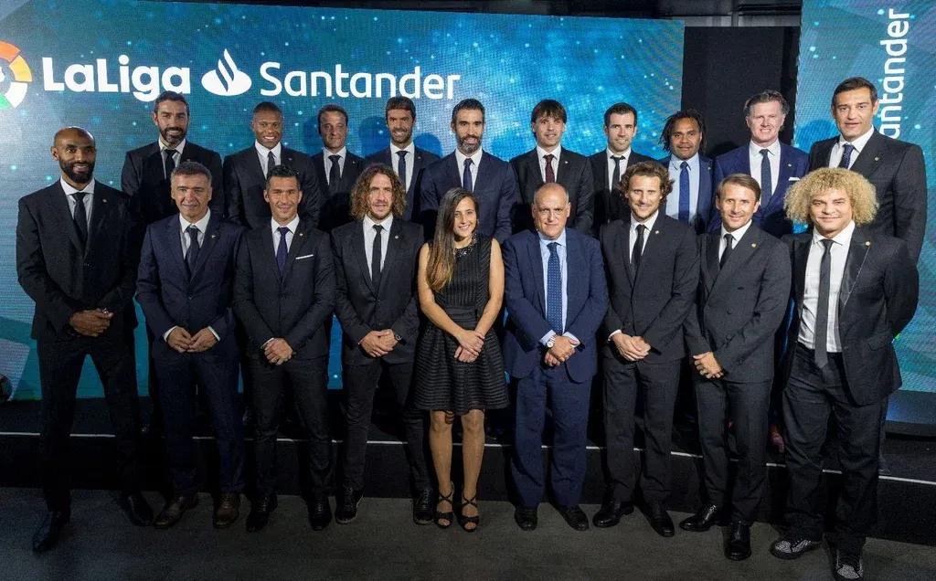 EFE Atrás, de izda. a dcha. Los futbolistas Robert Pires, Julio Baptista, César Sánchez, Xabi Prieto, Fernando Sanz, Fernando Morientes, David Albelda, Karembebu, Steve Macmanamann, Urtzaiz, y en primer término, de izda a dcha: Frederik Kanouté, Luis Garcia, Carlos Puyol, Aintzane Encinas, el presidente de LaLiga, Javier Tebas, Diego Forlán, Mendieta y Carlos Valderrama durante la presentación de LaLiga Ambassadors "Atlético, desde que llegó Simeone, ha tenido opciones siempre (en la Liga de Campeones), no significa que vaya a cambiar nada. No deja de ser una ilusión para todos los aficionados, pero para el equipo en sí el objetivo es ganar la mayor cantidad de partidos, ir paso a paso, y jugar una final tan deseada y ganarla sería espectacular, pero no porque sea en el Wanda Metropolitano es un condicionante de éxito", manifestó Forlán en un acto en Madrid.