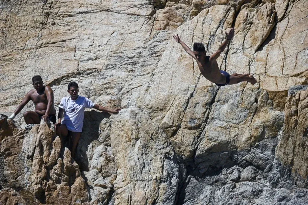 Ante un puñado de turistas, Abraham Estrada lanza un clavado desde un peligroso acantilado conocido como La Quebrada, emblema del balneario mexicano de Acapulco, devastado en octubre por el poderoso huracán Otis y que tímidamente empieza a recibir visitantes.