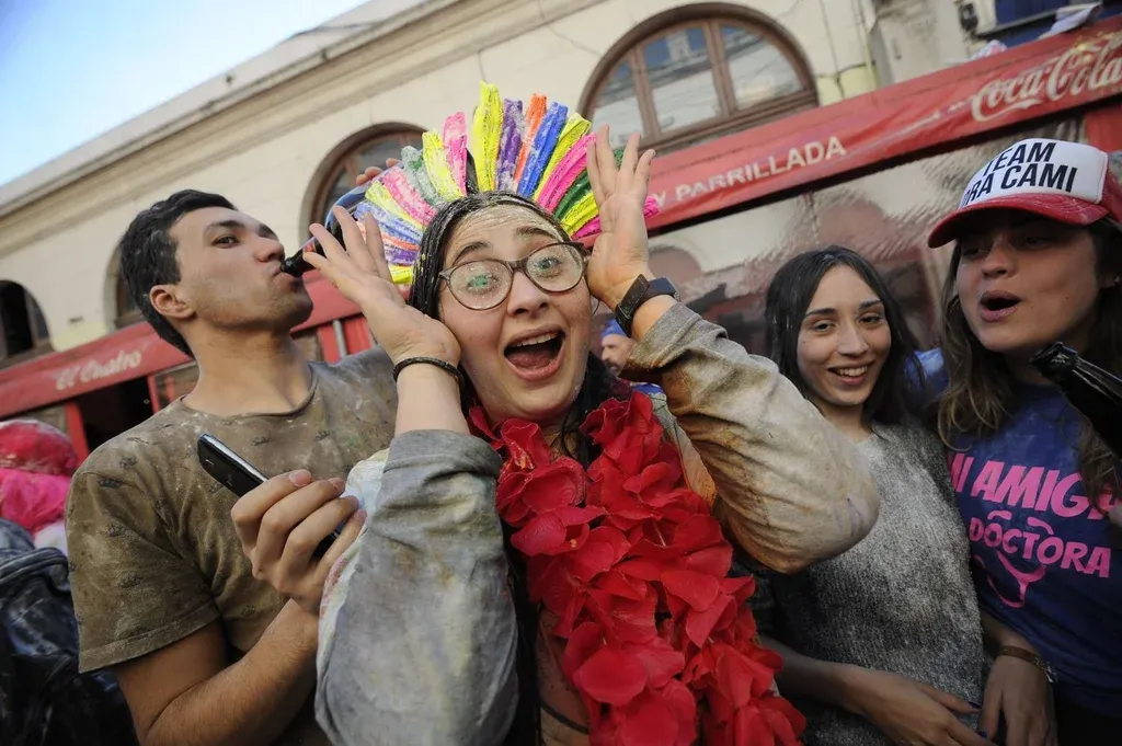 Con pelucas de colores, cotillón, gorros y remeras pintadas, los egresados de Medicina festejan su graduación cada 31 de julio en las inmediaciones del Mercado del Puerto, junto a sus familiares y amigos. Entre música, barullo y bocinas, los médicos se ensucian con harina, huevos y mezclas, mientras algunos toman alcohol. Hace más de 15 años se realiza esta celebración en este mismo lugar, y siempre estuvo presente el ensuciarse, el ruido y las bebidas alcohólicas. Pero los desbordes de los últimos años pusieron a la fiesta en cuestión.