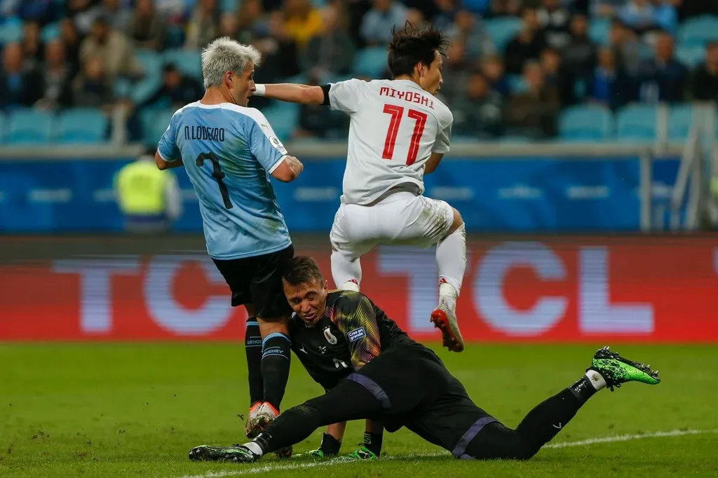 Claramente el error no es achacable a un jugador que hizo un esfuerzo para retroceder lesionado. Pero la defensa toda reaccionó tarde ante la apertura de la jugada hacia el flanco ciego y el escalonamiento de la marca del zaguero, en este caso, Diego Godín, llegó tarde, más allá de que Miyoshi enganchó hacia afuera.