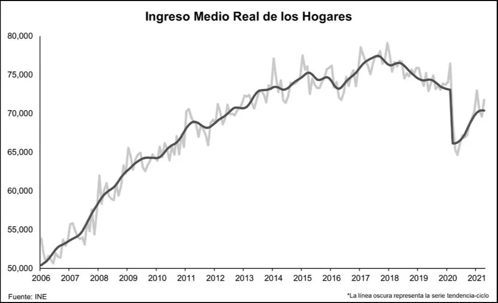 La heterogeneidad en la recuperación económica de los diferentes sectores de la economía continúa poniéndole un techo.