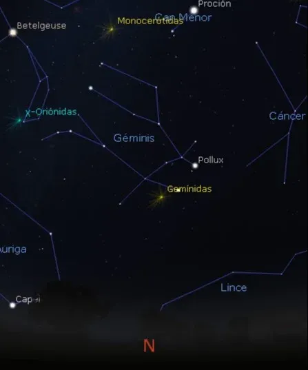 Las Gemínidas son una lluvia de meteoros proveniente del asteroide (3200) cuyo punto radiante (donde se ven en el cielo) está en la constelación de Géminis. Esta lluvia, que está activa desde el día 4 y seguirá hasta el 20, pero tendrá su momento de máximo el 13 de diciembre, alcanzando una frecuencia de 150 meteoros por hora, "aunque pueden ser menos por diversos factores", explica Fernández..