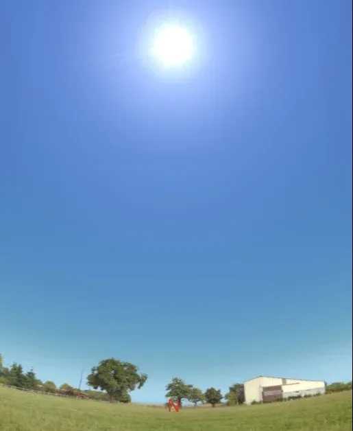 Imagen para las 12:43 p.m., momento en donde el Sol alcanzará la altura de +78° con respecto al horizonte.