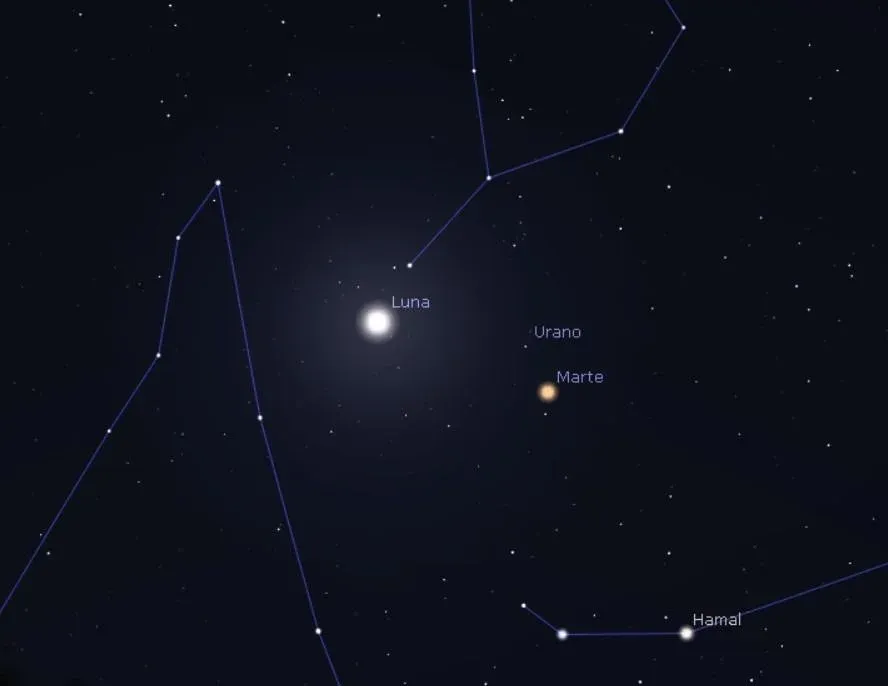 Además, este día, el satélite se encontrará próxima al planeta Marte desde nuestra perspectiva. También estará cerca el planeta Urano, que puede ser observado únicamente con telescopio.