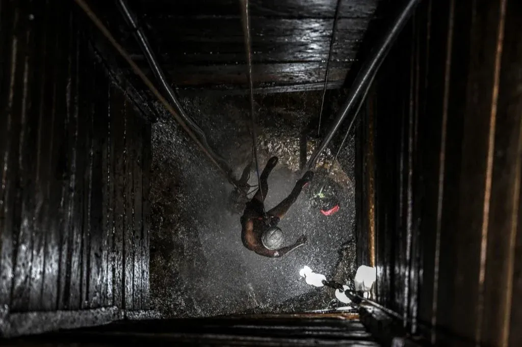 Nunes, responsable de la polea, y el compañero que emerge de las entrañas de la tierra junto a los otros tres que se amontonan en la choza esperando su turno para bajar son "garimpeiros", como se conoce en Brasil a los mineros que operan en la ilegalidad. Los cinco trabajan en la explotación del cobre en una estructura relativamente sencilla: en el suelo de la choza, un agujero de 1,40 por 1,40 metros es la puerta de la excavación de 20 metros de profundidad desde donde gritó su compañero. Varias veces al día, cada uno de los cuatro, turnándose, confiando ciegamente en Nunes y con un taladro en las manos, bajan hasta el fondo colgados de un arnés enganchado a un cable de acero. La polea eléctrica los traerá de nuevo a la superficie, con el balde de plástico azul cargado con decenas de kilos de piedras brillantes.