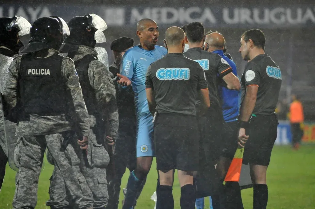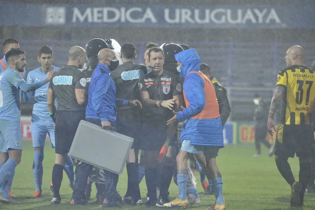 Cuando terminó el partido, todos los jugadores se le fueron encima a los jueces contra el banco de suplentes visitante, donde los jugadores de Peñarol se fueron rápidamente.
