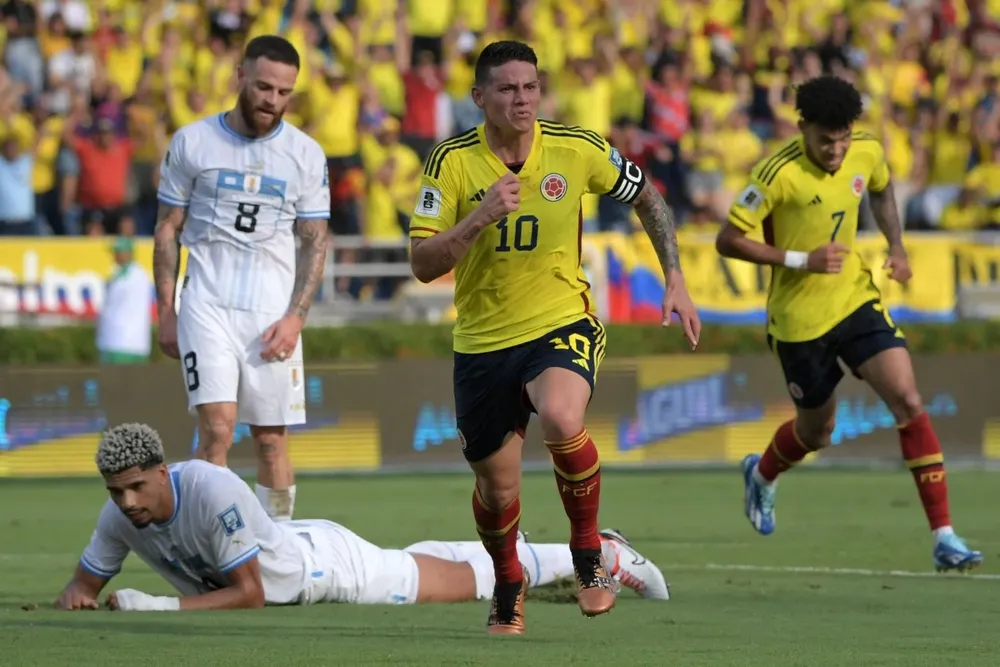 A los 34 minutos apareció James Rodríguez en su mejor versión y aprovechó un descuido defensivo de Uruguay, cuando en dos movimientos estableció con un zurdazo el 1-0.