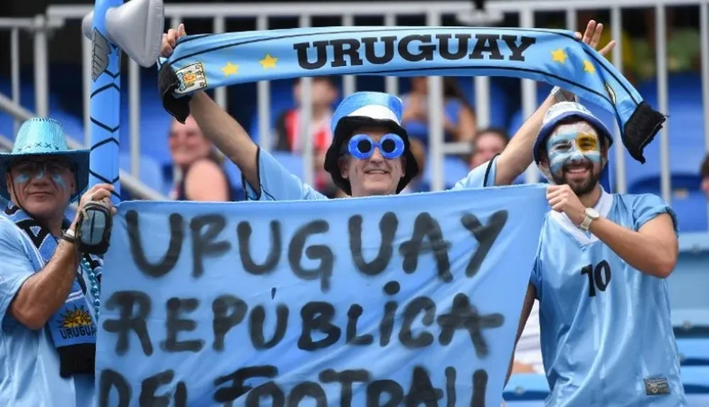 Los hinchas en el Arena das Dunas alientan a Uruguay