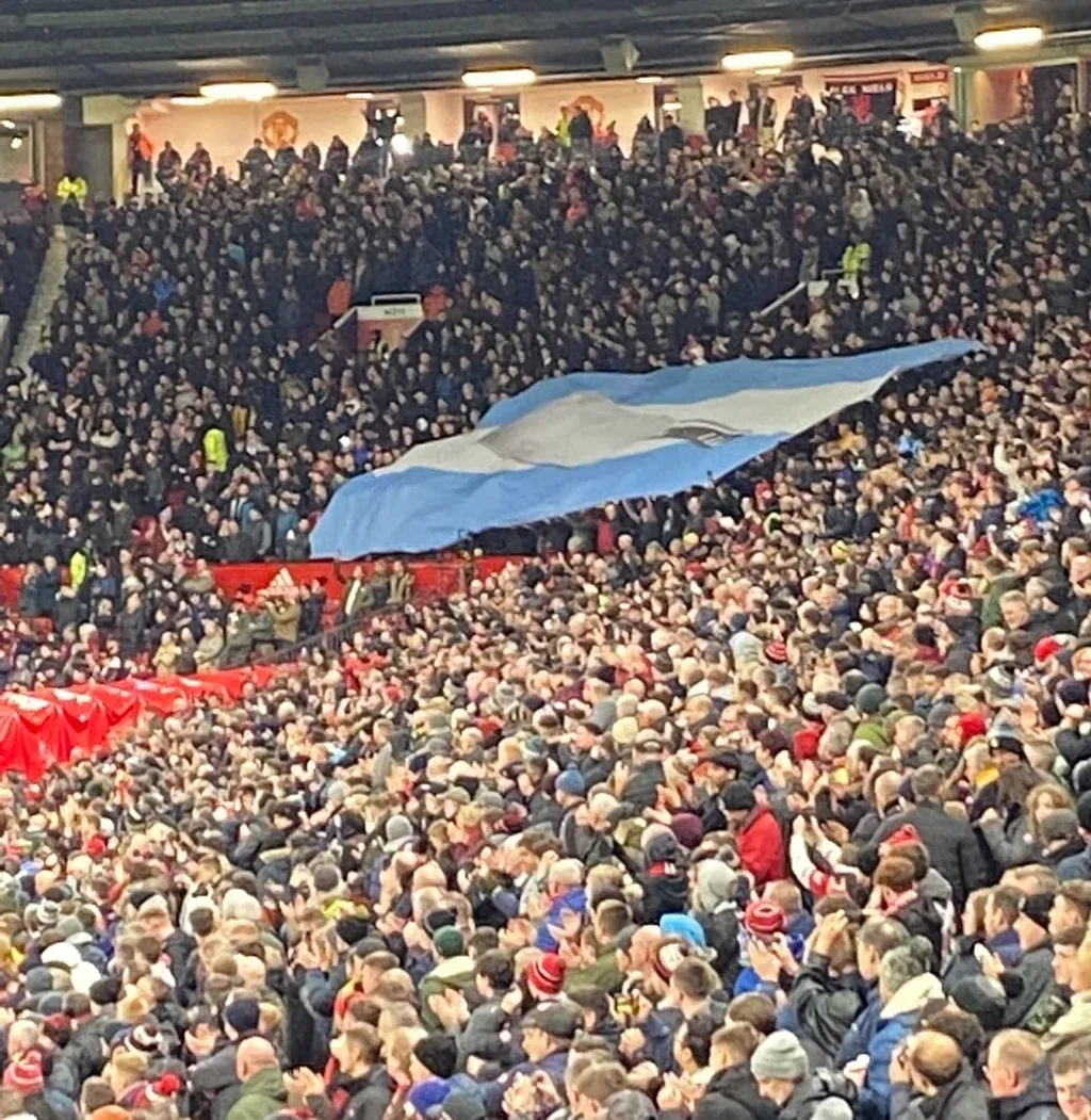 Lisandro Martínez, futbolista del Manchester United, fue recibido en Old Trafford con una gran bandera argentina en la tribuna, un gesto que se realza por la gran rivalidad histórica (política y futbolística) que existe entre Argentina e Inglaterra.