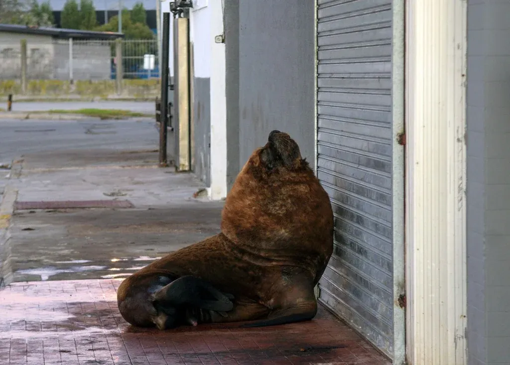 Como en otras partes del mundo donde los animales se atreven a andar en calles y veredas, aquí los leones y lobos marinos, símbolo del principal balneario argentino, retozan al sol plácidamente.
