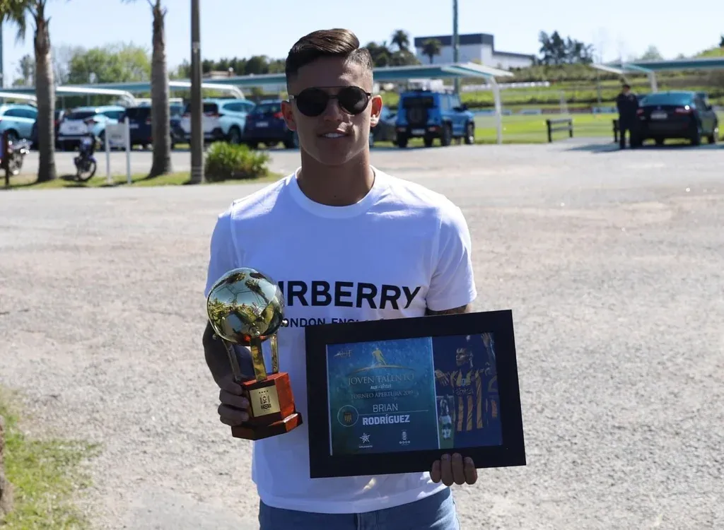 Brian Rodríguez con su premio de AUF