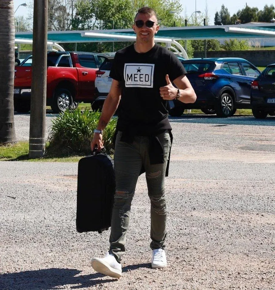 Con la llegada de la primavera, varios futbolistas optaron por usar remeras, también hubo muchos jeans gastados y otros que prefirieron la comodidad de los joggings, como Matías Viña y Maxi Gómez.