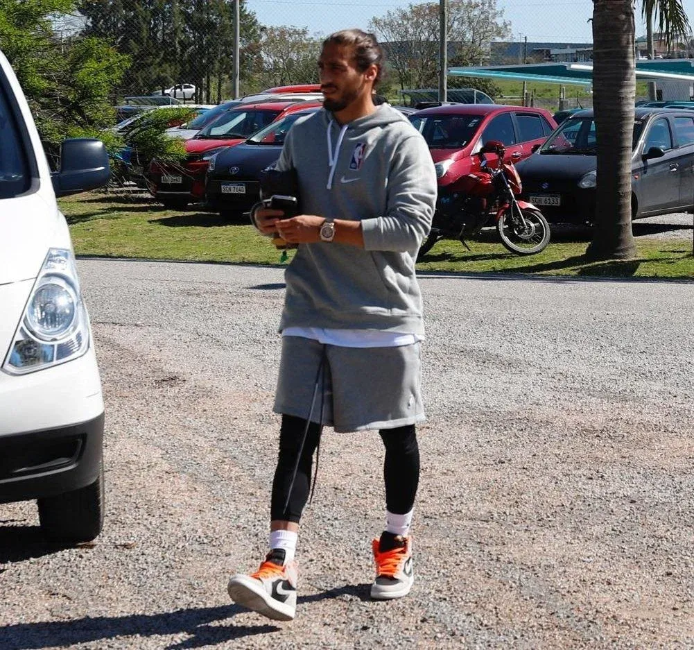 El “Pelado” Martín Cáceres se destacó, como es habitual, con un look NBA, con un kit como el que usan los jugadores de básquetbol de la liga estadounidense, con calzas y unos championes haciendo juego.