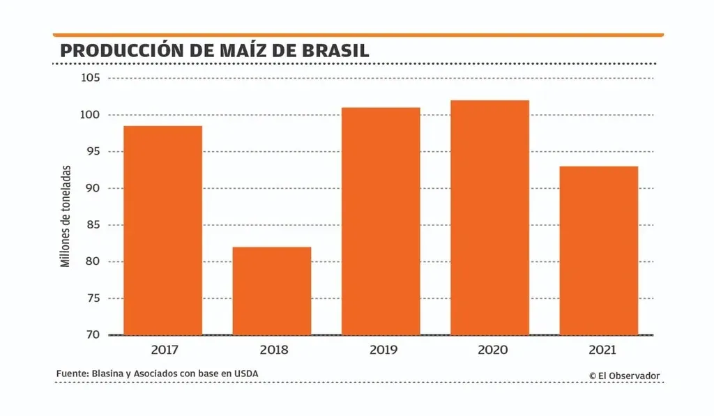 En el caso del maíz el hueco de la oferta proviene de Brasil y quedó confirmado en el informe con una reducción de 10 millones de toneladas en la producción prevista.