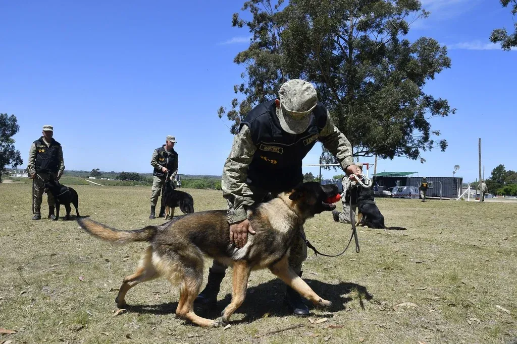En el Batallón 13 se realizan varios entrenamientos por día con los perros.